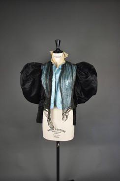 As with the Eton jacket above, I couldn't let this c.1895 bodice go to someone else! The silk satinof the gigot sleeves are in impeccable condition, and the bright blue of the bodice underneath the sheer net is absolutely stunning. I will have to do a little bit of conservation on this piece, as the sheer fabric doesn't seem to be connected to anything and looks really bizarre hanging haphazardly past the waist.